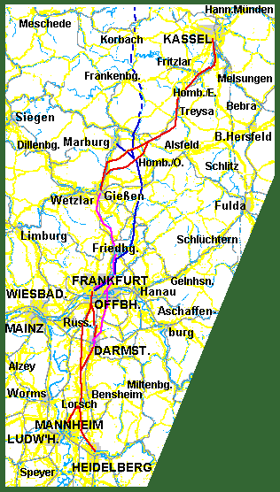 von Offenbach nach Gießen und von Frankfurt nach Gießen: