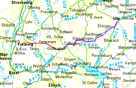 Donaueschingen ist sinnvoll ohne Umweg südlich zu umfahren.