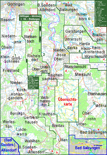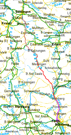 | Teil I: Göttingen Breitungen (Werra) | Teil II: Breitungen Meiningen Bamberg | Teil III: Bamberg Fürth Nürnberg | |||||||||