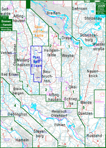 Auf dem Fahrrad direkt von Bremen nach Hameln oder von Hameln nach Bremen: Das Mittelgebirgstal der Oberweser bildet zusammen mit den anschließenden Tälern von Fulda und jenseits des Landrückens Sinn eine hervorragende Fahrradverbindung zwischen Nord- und Süddeutschland. Zwischen Hessisch Oldendorf und Vlotho verläuft das Tal jedoch nicht in Nordsüdrichtung, sondern in Westostrichtng. Und zwischen der Porta Westfalica fließt die Weser durch die Norddeutsche Tiefebene. Hier gibt es so viele Nebenstraßen und gut befestigte Wirtschaftswege, dass es keinen Grund gibt, hier dem Weserradweg zu folgen, von dem man zudem die Weser in der Ebene auf lange Strecken gar nicht sieht. Darum folgt die hier vorgestellte Route in der Ebene annähernd der Luftlinie von Bremen nach Bad Eilsen. Bei Bad Eilsen gibt eine Lücke zwischen den Höhen des Weserberglandes. So erreicht man hier den Norsüdwärts verlaufenden Teil des Wesertals etwa 25 km flussaufwärts der Porta Westfalica. Die nächste Stadt ist dann Hessisch Oldendorf. zwischen diesem und Hameln verläuft der Weserradweg neben der stark belasteten Bundesstraße auf der östlichen Talseite, die empfohlene Route dagegen an der merklich ruhigeren Landstraße auf der westlichen Talseite. Anschließende Routen: Nach Norden schließt sich in Bremen die Route Bremen Bremerhaven an, eine Umfahrung Bremens wurde hier noch nicht erarbeitet. In Affinghausen kann man westlich nach Oldenburg abbiegen, siehe Route Die Weiterfahrt südwärts durchs Wesertal ist als Route Hameln Wesertal Kassel dargestellt, mit einigen Verbesserungen gegenüber dem Weserradweg. daran schließt sich vor Allem die Route Kassel Fulda Würzburg an und daran die Route Würzburg Füssen, sowie die Routen Würzburg Ulm und Ulm Friedrichshafen (Bodensee). Von Hann. Münden kann man aber auch die Werra aufwärts fahren, siehe Route und dann Route Die Fahrradstrecke durchs Wesertal an die Werra ist etwa 20 km länger als die durchs Leinetal, dafür kommt man im Wesertal nicht durch Großstädte. Im Leinetal dagegen radelt man teilsweise in Hörweite einer Schnellstraße und einer Autobahn. Von Bremen auf dem Fahrrad nach Bad Sooden-Allendorf sind es über Bad Eilsen, Hameln und Hann. Münden 304,5 km, über Hannover und Göttingen nur 285 km. |