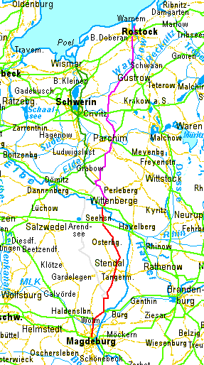 | Teil A: Magdeburg Stendal Wittenberge (Elbe) | Teil B: Wittenberge (Elbe) Parchim Rostock | ||||||||||