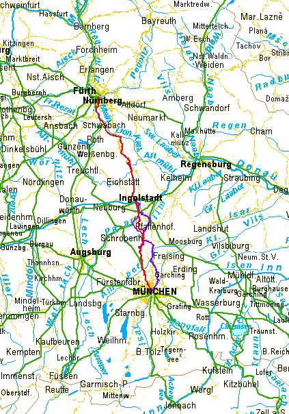 Tracks bei GPSies: • Nürnberg Ingolstadt Tegernbach Ampermoching München • München Ampermoching Tegernbach Ingolstadt Nürnberg |
