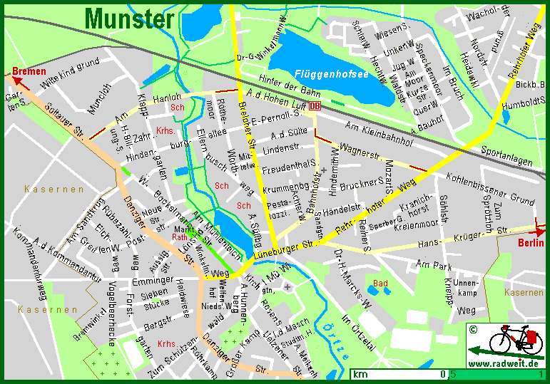 Stadtplan von Munster an der Oertze als Zusatzinformation zur Direktverbindung Berlin Bremen (Routenempfehlung für's Fahrrad)