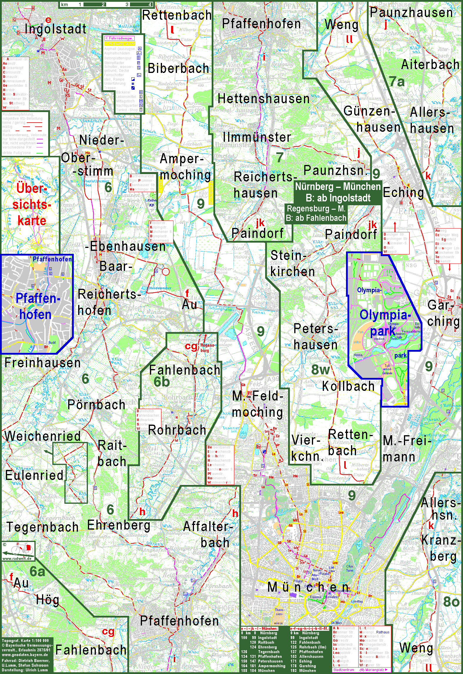 Ingolstadt Pfaffenhofen (Ilm) München in mehreren Varianten, Norden von Feld 1 auch als Teil A von Ingolstadt Augsburg, Felder 6b bis 9 auch Teil B von Regensburg München |