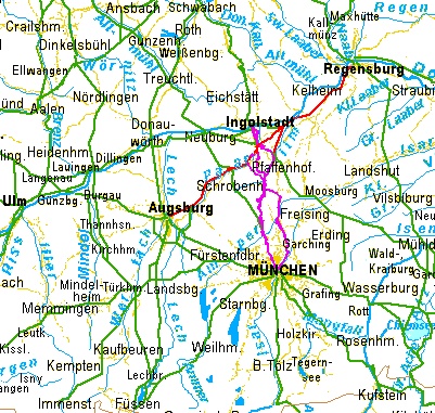 Regensburg Neustadt (Don.) Schrobenhausen Augsburg, Felder 1 bis 3 auch als Teil A von Regensburg M¸nchen, Felder 5 bis 8 auch als Teil B von Ingolstadt Augsburg, |